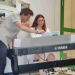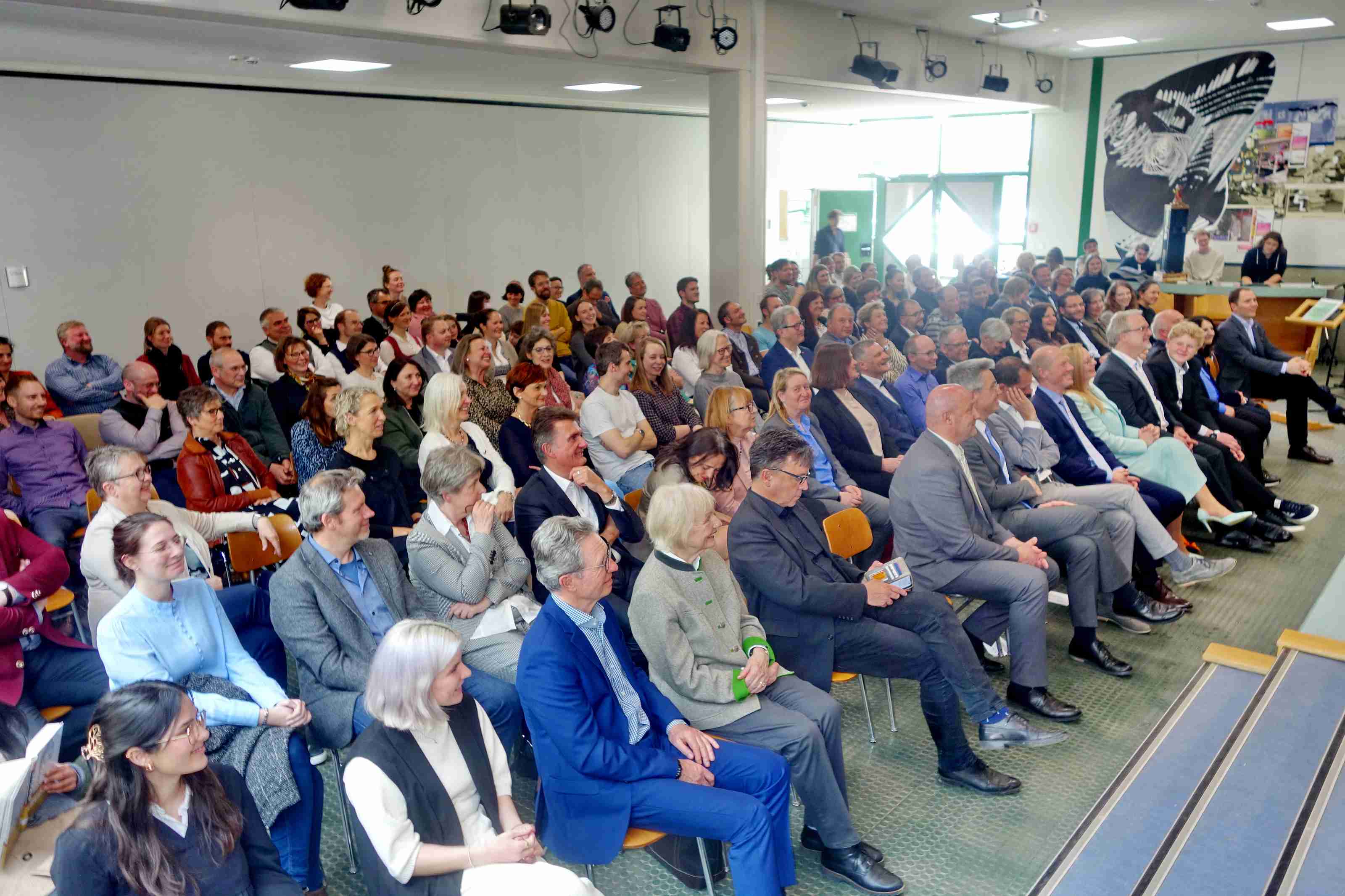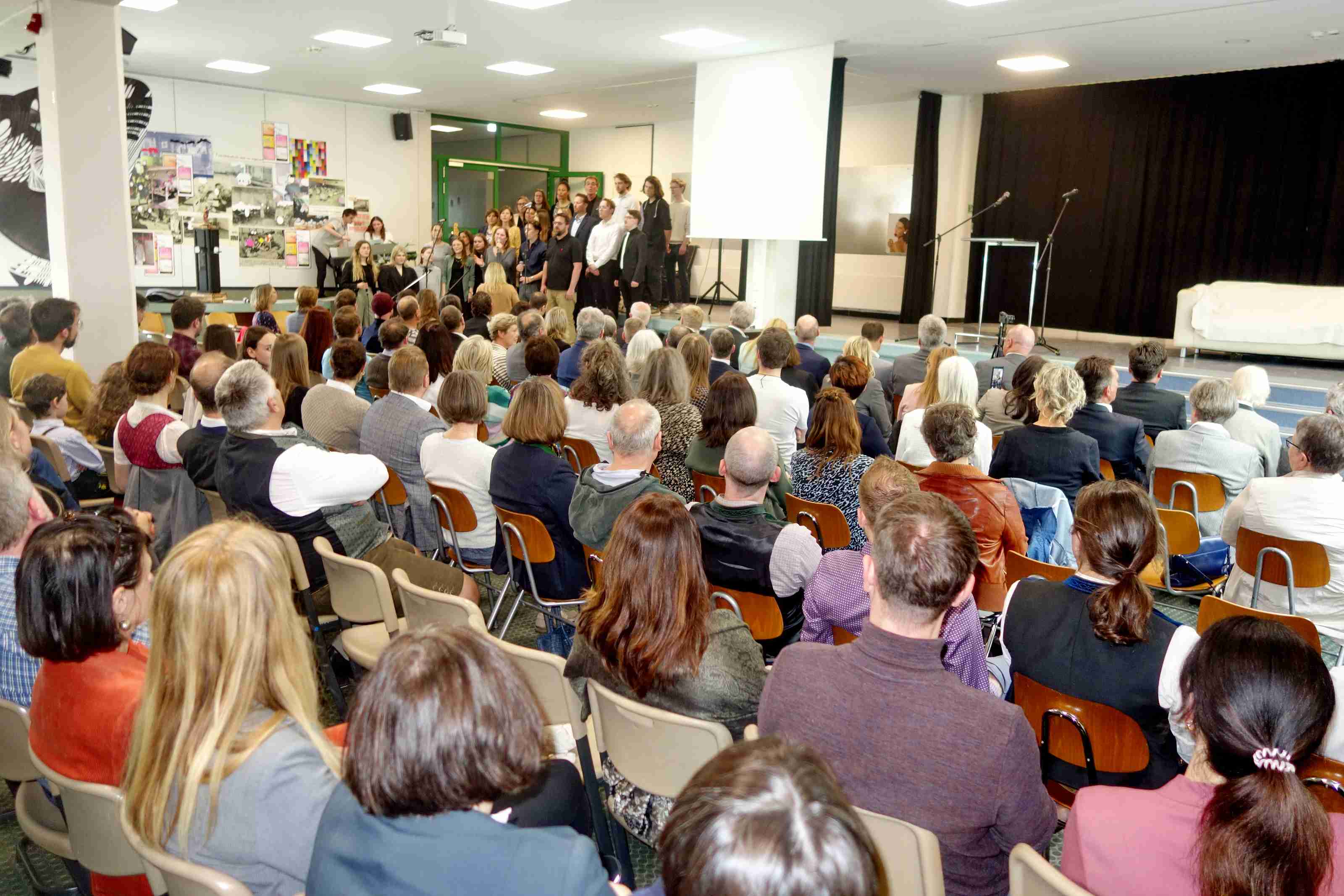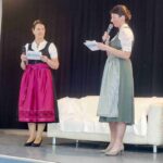 Heiter und doch auch nachdenkenswert war ein Couch-Gespräch von Maria Beer und Tiara Vollmer von der Schülerzeitung. Dabei erinnerte die Schulleiterin, dass sie ursprünglich Schauspielerin oder Journalistin hätte werden wollen. Doch die Wohnnähe zu den Regensburger Domspatzen ergab, dass sie im Rahmen einer Aushilfe in das Lehramt hineinschnupperte, Gefallen fand und diesen bis heute behielt. Sie gab auch Einblick, dass sie Literatur abwechselnd in englischer und deutscher Sprache lese und dass sie auch ein Harry-Potter-Fan ist. Auf die Frage zur Künstlichen Intelligenz sagte sie: „Im Schulalltag und im modernen Unterricht können wir nicht den Kopf in den Sand stecken und die KI ignorieren, das funktioniert nicht. Die KI wird ebenso wie das Internet, dort wo es Sinn gibt, im Unterricht eingebunden werden müssen“.