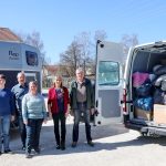 Berich und Fotos: Hans Kronseder – 1. Nach der Beladung und Weiterfahrt nach Landshut von links: Andreas Seidel, Peter Seidel, Monica Seidel, Birgit Oberloher zusammen mit dem Vilsheimer Trachtenvereinsvorsitzenden Hans Voitenleitner