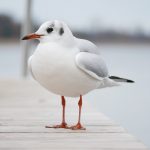 Die Lachmöwe zählt zu den kleineren Möwenarten und ist in etwa so groß wie eine Ringeltaube. Auffallendes Merkmal dieser Möwe ist der schokoladenbraune Kopf mit den weiß umrandeten Augen. Diese „Gesichts-Maske“, die nur zur Brutzeit getragen wird, sieht aus wie eine Kapuze, die nicht ganz bis in den Nacken reicht. Jetzt im Schlichtkleid ist der Kopf hell mit einem dunklen Ohrenfleck.