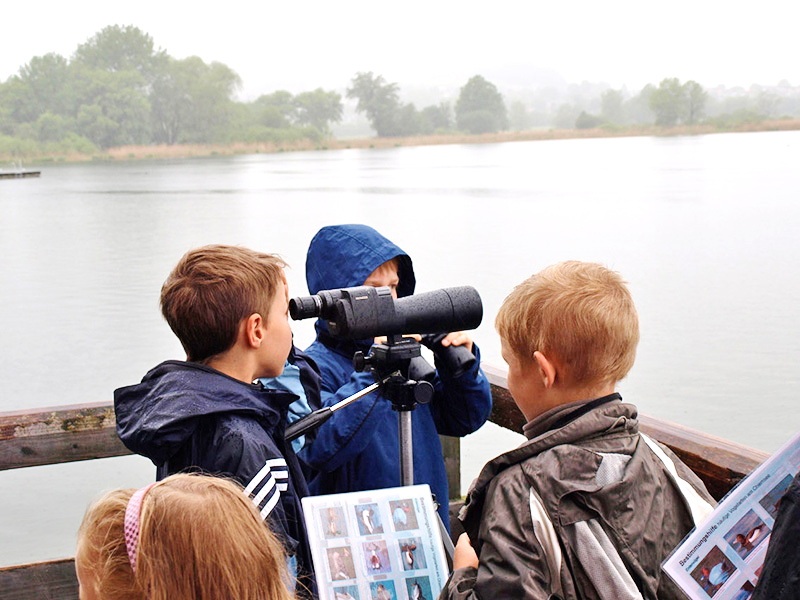 Vogelbeobachtung an der Hütte in der Prienmündung
