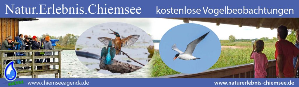 Seit vielen Jahren organisiert der Abwasser- und Umweltverband Chiemsee geführte Vogelbeobachtungen, bei der Einheimische aber auch Gäste und Besucher von außerhalb mehr über die einzigartige Vogelwelt erfahren können; immer sonntags an unterschiedlichen Beobachtungsstationen rund um den Chiemsee. Um dieses kostenlose Angebot weiterhin anbieten zu können, werden interessierte, begeisterte und zugleich engagierte Naturliebhaber*innen gesucht, die gerne ihr Wissen über die Vogelwelt und die zu beobachtenden Arten an die Besucher weitergegeben möchten. Kenntnisse über die gängigen Wasservogelarten am Chiemsee werden vorausgesetzt.