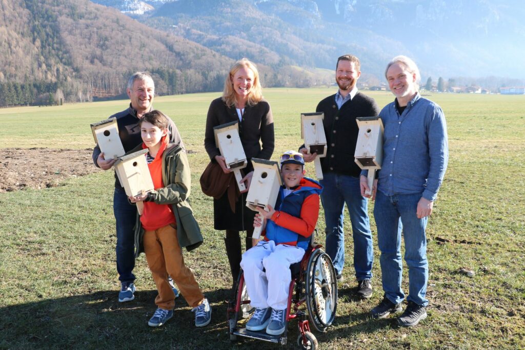 Schließlich waren alle 25 Nistkästen fertig; Projektleiter Sepp Schlemer und der Vorsitzende des Fördervereins Tobias Kopton luden Herzogin Elizabeth in Bayern als Vertreterin der Wildenwarter Jäger und den Vorsitzenden der Jagdgenossenschaft Josef Held nach Aschau, um die fertigen Häuschen abzuholen. Herzogin Elizabeth und Josef Held bedankten sich bei der Berufsschulstufe aus dem KIZ Aschau und Sepp Schlemer für die viele Arbeit und die Qualität der fertigen Vogelhäuser. Josef Held kündigte an, dass die Vogelhäuser bei der Jahreshauptversammlung der Wildenwarter Jagdgenossenschaft am Donnerstag, 9. März um 19 Uhr für die Jagdgenossen bereitstehen.