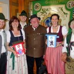 „Vogelhäuschen-Foto“ von links: Versteigerer Matthias Stoib, Elke Kroner (Schriftführerin der Blaskapelle Übersee-Feldwies), Versteigerer Andi Stoib, „Aushilfs-Versteigerer“ Robert Gmeiner, Sabine Till mit dem „Löwen-Vogelhaus“ und Vogelhaus-Spender Hans Greithanner.