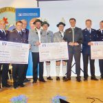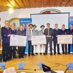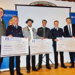 Feste feiern und große Feste und Jubiläen auch finanzieren können, das geht für die vielen ehrenamtlich geführten Vereine immer dann besser, wenn sie sich einer Sponsoren-Unterstützung erfreuen können. Gleich drei in diesem Jahr jubilierende Gemeinschaften aus dem Gebiet Prien und Umgebung der Volksbank Raiffeisenbank Rosenheim-Chiemsee eG durften sich an einer Förderung für ihre diesjährigen Feste bei der Kunden- und Mitgliederversammlung im Trachtenheim Hittenkirchen erfreuen. Für die Priener Festwochen vom 23. Mai bis 3. Juni erhielten je 1.000 Euro die Feuerwehr Prien (150 Jahre) und die Priener Blaskapelle (190 Jahre). Eine weitere Zuwendung in gleicher Höhe und einen entsprechenden symbolischen Scheck bekam ebenfalls die Feuerwehr Rimsting für ihren 150. Geburtstag, der vom 20. bis 22. September gefeiert werden wird. Unsere Aufnahme zeigt bei der Übergabe von links: Priens Bürgermeister Jürgen Seifert, Priens Feuerwehrvorstand Bodo Sagebiel, Vorstand Stefan Hackenberg von der Blaskapelle Prien, Geschäftsführer Christian Denk, Geschäftsführer der Hauptgeschäftsstelle Prien, Feuerwehrvorstand Alexander Baur von Rimsting und Mirko Gruber, stellvertretender Sprecher des Vorstands der Volksbank Raiffeisenbank Rosenheim-Chiemsee eG. „Wir fühlen uns unseren Kunden und Mitgliedern sowie den Vereinen und der heimatlichen Kultur verpflichtet, so werden wir auch in diesem Jahr wieder spenden“, so Christian Denk. Nur kurz nach der Scheck-Übergabe musste die Priener Feuerwehr-Delegation aufgrund einer Alarmierung wieder von Hittenkirchen abrücken.