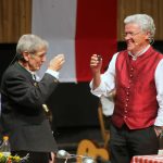 Zum ersten Mal waren unsere langjährigen bewährten Sprecher Bert Lindauer (Bayern) und Joch Weißbacher (Tirol) in einer Doppelmoderation zu hören – ein wahrer Genuss, wie sich die beiden einerseits die „Bälle zuspielten“, andererseits – sehr zur Freude des äußerst aufmerksamen Publikums – ungemein schlagfertig auf die feinen verbalen Nadelstiche des jeweiligen Gegenübers prompt reagierten. Sie verstehen ihr „Handwerk“ ausgezeichnet, beide sind ja seit Jahrzehnten überaus gefragte und geschätzte Moderatoren bei großen und kleinen Volksmusikveranstaltungen sowohl in der näheren als auch in der weiteren Umgebung.