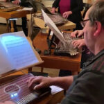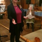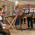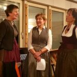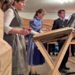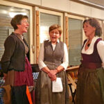 Ein Highlight war der Frauen-Dreigesang Kleinmachnow. Dieser hat sich, ebenso wie das Hackbrett-Consort, erst im letzten Jahr zusammengefunden. Irmgart Mann hat sich hierbei statt mit dem Hackbrett, mit ihrer Stimme eingebracht. Zusammen mit Johanna Einspanier aus Oberbayern und Waltraud Kruck aus Österreich pflegt sie diese alpenländische Gesangstradition in Kleinmachnow, hinter der Stadtgrenze von Berlin. Das Besondere beim Dreigesang ist, dass dreistimmige Volksmusikstücke von einem Gesangs-Trio a Cappella vorgetragen werden. Nach den stimmungsvollen Gesangseinlagen der drei Damen dann alpenländische Lieder auf der Harmonika vom Steirer-Virtuosen Thomas Bräuer, ebenfalls Mitglied beim Verein der Bayern. Dazu gab es ein weiteres Highlight des Abends, der Königsjodler von der Jodelmoni. Nach einem abwechslungsreichen Konzert der beteiligen Musikgruppen folgte gemeinsam der Andachtsjodler. Am Ende des Konzerts hieß es dann „Servus, pfüat Gott und auf Wiederseh’n“.
