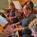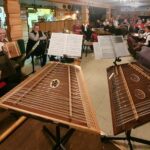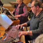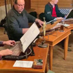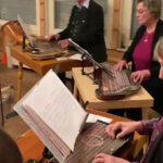 Nach der Begrüßung der Musiker und Gäste durch den Vorsitzenden des „Vereins der Bayern in Berlin“ präsentierte sich das neu gründete Hackbrett Consort Kleinmachnow, unter der Leitung von Irmgard Mann. Sie ist gebürtig aus Bayerisch-Schwaben und seit 30 Jahren Organistin an der Katholischen Kirche St. Thomas Morus, Kleinmachnow. Mit Denis Pinta, Ines von Nolting und Helmut Amberger hat sie das Hackbrett-Ensemble initiiert. Nach einem ersten Set klangvoller Hackbrett-Stücke folgte der Zitherspielkreis Berlin 1878. Dieser pflegt, seit „sage und schreibe“ 146 Jahren die Tradition des Saitenspiels in Berlin. Astrid Belschner, Vorsitzende vom Landesverband Berlin-Brandenburg des Deutschen Zitherbundes, stellte das Ensemble vor. Dabei ging sie kurz auf Historie des Zitherspielkreises und auch des Zitherspiels an sich ein. Nicht nur auf der Zither, auch mit ihrer Stimme begleitete die passionierte Kammersängerin das Zither-Ensemble. Neben Astrid mit an der Zither Hella Poser, Katrin Römer, Dietmar Geßner und Helmut Amberger. Dazu an der Gitarre Monika Porsch und Julia Glatzel.