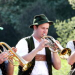 FLM Amerang_Volksmusiknachmittag_001.jpg: Aufgehorcht: Blechbläser machen Stimmung Auf der Wiese am Häuslmannhof aus Aschau im Chiemgau. © Bezirk Oberbayern, FLM Amerang, Nixdorf.