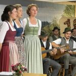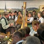 Die aus dem Rottal stammende Vilsleit’n Musi wartete mit einem heute selten gewordenen Bandoneon im Wechsel mit einer Gitarre, einer Harfe und einer steirischen Ziach auf und interpretierte gekonnt bekannte und unbekanntere Stücke. Den aus dem südlichen Landkreis Ebersberg kommenden Oimbliah Dreigsang verbindet nicht nur eine lange Freundschaft, sondern auch die Liebe zur Volksmusik. Sie legen viel Herzblut in ihre besonderen Lieder, die sie zum Großteil selbst schreiben, so die Sprecherin. Der Herbst kam mit dem Dreigsang in den Saal mit „Braune Wies, nosse Steigal“ und „Da Nebe ziahgt eina“. „Musikanten des woaß i“, „De Liab is a lange Roas“ und „Da Dog gibt sei Leuchtn auf“ komplettierten, von zwei Gitarren begleitet, den bunten Strauß an Liedern. Beschwingt begann die Familienmusik Ernst mit dem aus Musik und Gesang bestehenden Stück „Es ist schön, bei Euch zu sein“. Bei der in Schwindkirchen beheimateten musikalischen Familie spielen die beiden Elternteile, zwei Töchter und zwei Söhne Trompete, Akkordeon, Geige, Kontrabass, Basstrompete, Klarinette und Posaune und verstehen es ausgezeichnet, bodenständige Musik schmissig darzubieten. Beim Duschlhof G’sang, zwei Frauen und zwei Männer aus dem Rottal, ebenfalls familiär verbunden und diesmal allerdings mit einer Aushilfe, hieß es harmonisch und mit nicht oft gehörten Liedern „A guats Jahr is boid wieder umma“, „D‘ Arndt is eibrocht“, „Vom Häusl am Roa“, „Im Wirtshaus is lustig“ und „Oa Hoibe Bier, zwoa Hoibe Bier“.