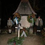 Bericht und Fotos: Heinrich Rehberg – Pfarrer Hermann Overmeyer hielt das Libera, Gerd Kalckbrenner und Bürgermeister Peter Solnar legten Kränze zum Gedenken für die Gefallenen, Vermissten und Verstorbenen der ehemaligen Gemeinde Sachrang am Kriegerdenkmal nieder. 62 Gefallene und Vermisste hatte der Ort in den beiden Weltkriegen zu verzeichnen.