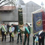 Die Fahnenabordnungen der Vereine aus der ehemaligen Gemeinde Wildenwart auf dem Weg zum Kriegerdenkmal