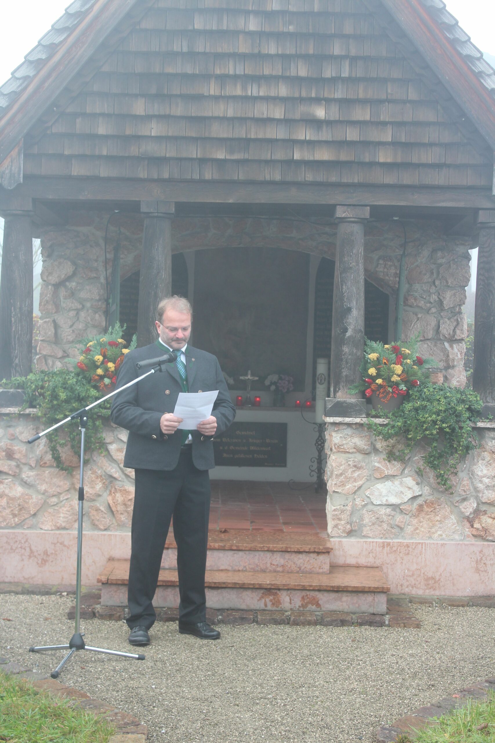 Der zweite Bürgermeister von Frasdorf Josef Prankl bei seiner Ansprache zum Volkstrauertag am Wildenwarter Kriegerdenkmal