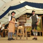 “Mit vielen Leuten haben wir gerechnet, aber nicht mit gar so vielen Leuten”, das sagte die glückliche Vorständin Lisi Hilger zum Auftakt des Gaufestes im großen Fesetzelt. Vom Bieranstich nachfolgender Bericht: “Die Vorständin Lisi Hilger vom Rottauer Trachtenverein begrüßte alle Ehrengäste und Gäste bei der ersten Veranstaltung des 82. Gautrachtenfestes des Chiemgau-Alpenverbandes, dem Bieranstich, im vollen Festzelt. „Mia gfrein uns, dass es endlich losgeht, nach langer Vorbereitungszeit und zwei Wochen Arbeit beim Einräumen und Dekorieren des Zeltes“, sagte sie. Sie forderte alle auf, sich das Kaffätschal und die Bar anzuschauen, um zu sehen, welche guten Ideen unsere Leute hatten, um den Besuchern des Festes den Aufenthalt im Festzelt recht angenehm zu gestalten. In seiner Eröffnungsrede sprach der Schirmherr Bürgermeister Rudi Jantke dem Ausrichter, dem Trachtenverein „d´Gederer“ einen großen Dank aus. Vorständin Lisi Hilger, der Vereinsausschuss und die Mitglieder haben unzählige Stunden an Freizeit geopfert, um uns ein schönes Fest zu bereiten, fuhr er fort. Besonders die letzten Wochen waren zeitaufwändig. Beim Zeltaufbau und bei der Dekoration haben „so viele – ja schon fast unglaublich viele“ mitgeholfen. Die Aktiven haben eine sensationelle Bar, die „Torfbahn-Boazn“, gebaut und ein ganz besonderes Kaffeezelt lädt zum Verweilen ein. Seine kurze Rede beendete er mit der Feststellung „Es ist alles gerichtet. Mit den Worten „Auf geht´s zum Ozapfn“ ging er seine Arbeit als Schirmherr an. Mit drei kräftigen Schlägen meisterte er seine Aufgabe sehr gut. Helfend zur Seite standen ihm dabei vom Hofbräuhaus Traunstein Außendienstmitarbeiter Andi Hell und Chef Maximilian Sailer.