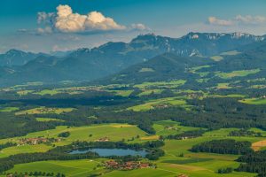 Der Chiemgau ist bekannt für seine Fülle von faszinierenden Landschaften, unter anderem wegen der Vielfalt an Seen und Bergen. Wenn es dann noch eine Gelegenheit gibt, die Chiemsee-Alpenland-Region aus der Luft zu betrachten, dann entstehen solch faszinierende Bilder wie diese vom Tinninger See in der Gemeinde Riedering mit Blick bis zur Kampenwand.
