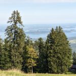 Wir starten in Adersberg, wo ein schöner Höhenrundweg beginnt. Am Wanderparkplatz bei dem Berggasthof steht erst ein einziges Auto und auch auf dem gesamten Rundweg begegnet uns nur eine Handvoll Wanderer und zwei Mountainbiker. Von Adersberg gehen wir anfangs steil, später etwas moderater bergauf. Der Weg ist aussichtsreich, bald gibt es schöne Ausblicke auf den Chiemsee. Wir kommen zu einer Bank mit grandiosem Blick in die Berge, greifbar nah die Gedererwand und die Kampenwand. Wir nehmen sie in Beschlag und genießen eine Weile die Ruhe und die schöne Landschaft.