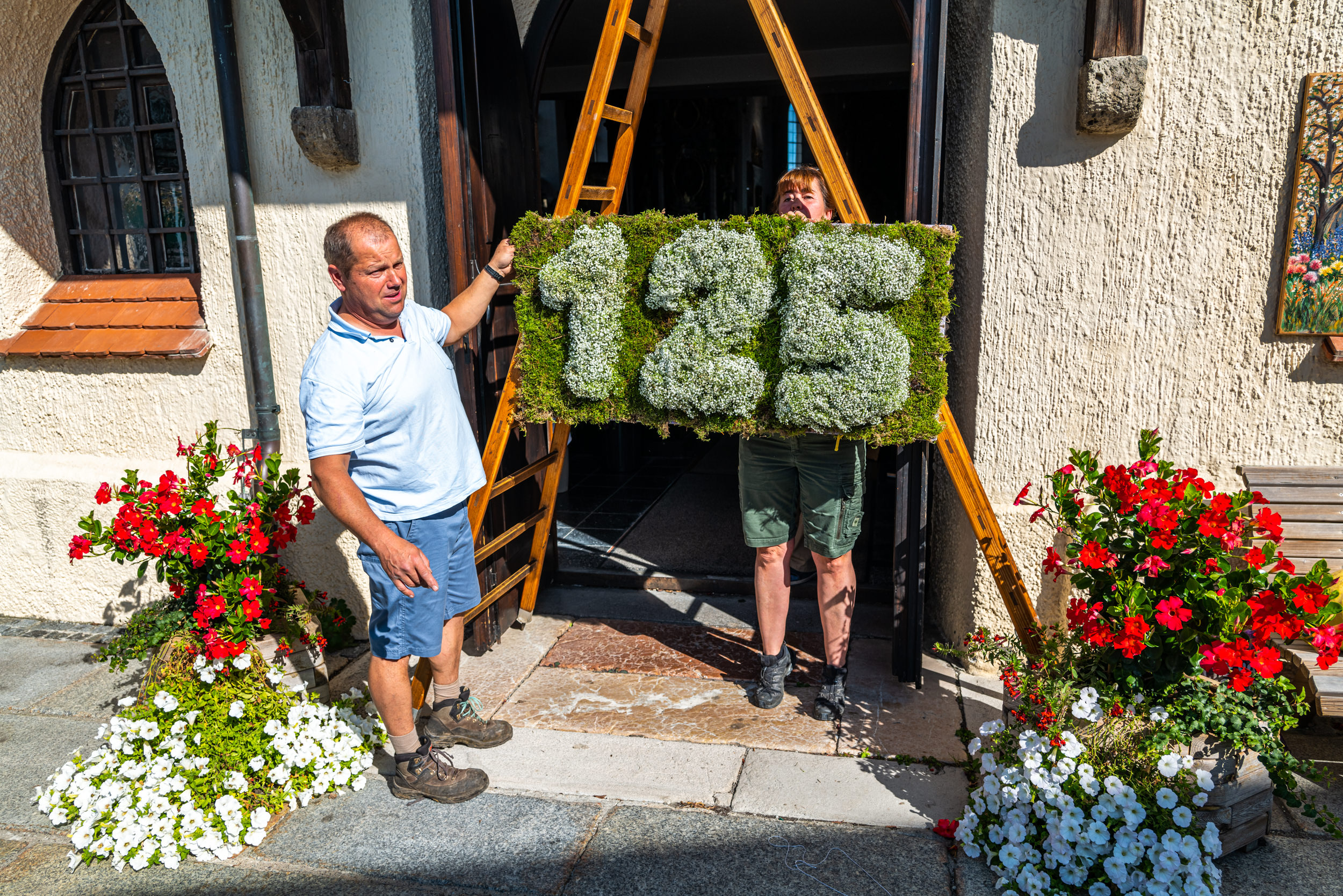 Vorbereitungen des Obst- und Gartenbauverein Samerberg für das 125-jährige Jubiläum zum Erntedank am Dorfplatz von Törwang. HIer: Vorstand Simon Mayer