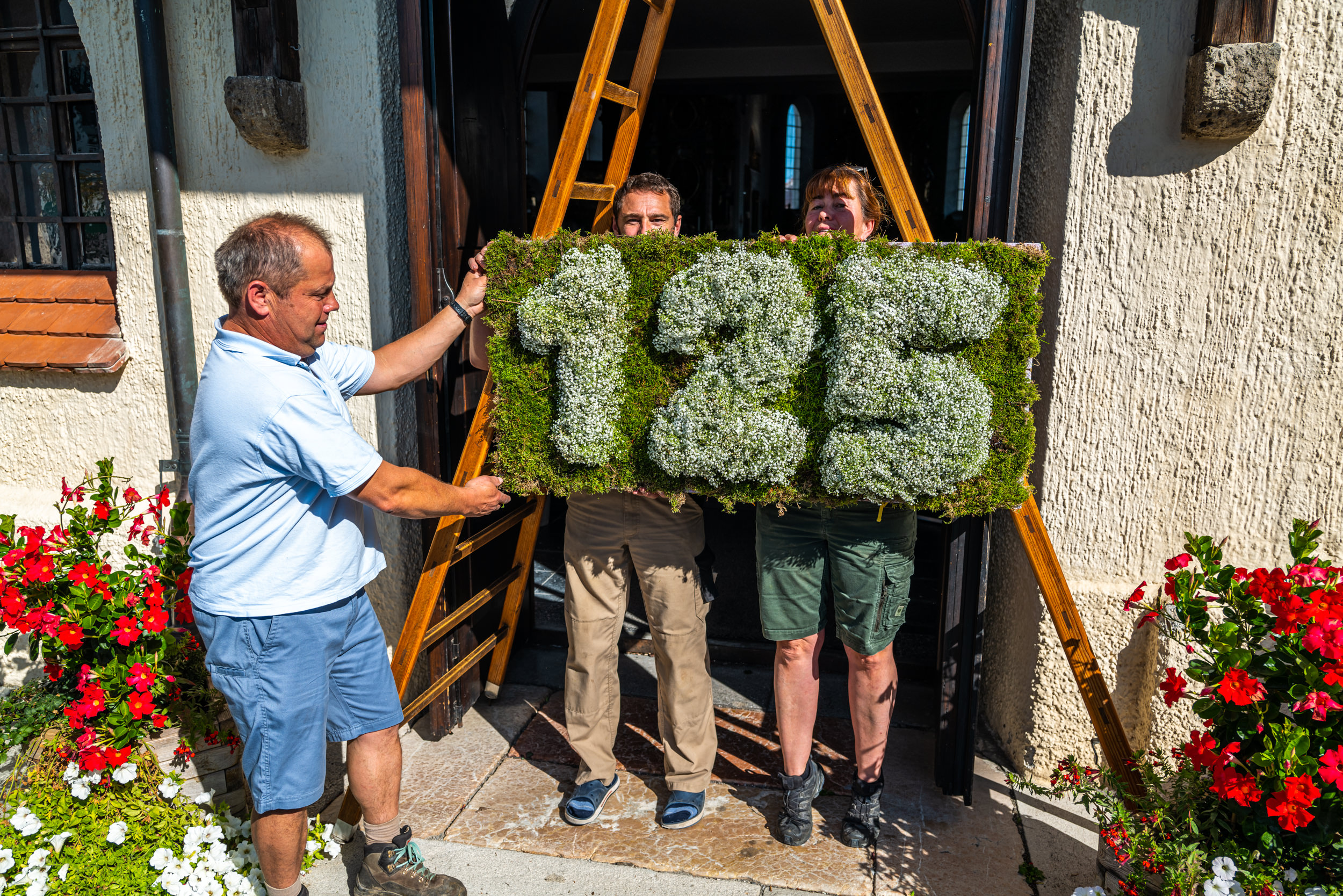 Vorbereitungen des Obst- und Gartenbauverein Samerberg für das 125-jährige Jubiläum zum Erntedank am Dorfplatz von Törwang.
