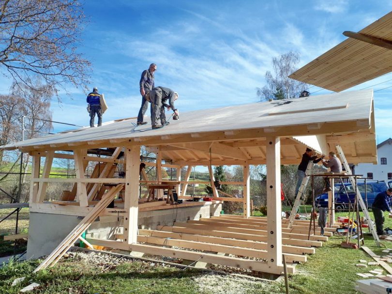 Fotos: erstmals wird beim Adventsmarkt die in diesen Tagen erstellte Überbauung der Bühne auf dem Zeltlagerplatz zum Einsatz kommen.