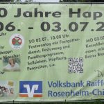 In Happing bei Rosenheim wird bald gefeiert, Anlass sind „1000 Jahre Happing“ und „50 Jahre Eingemeindung“. Der Bürger-Verein Happing freut sich dieser Tage vieler fleißiger Helfer, die das Fest im Festzelt vom Donnerstag, 29. Juni bis Montag, 3. Juli vorbereiten. Am Festsonntag sind ab 10 Uhr ein Festgottesdienst, anschließend ein Festzug und ab 13 Uhr ein Familienprogramm.