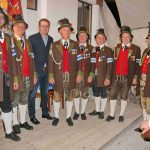 Foto zeigt v.l.Spielmannszugleiter Florian Möderl, Stell. -Oberleutnant und Schützenmeister Georg Winkler, Bürgermeister Christoph Schneider, Hauptmann Sepp Stadler, Kompanieschreiber Rainer Tremmel, Leutnant Wast Heibler, Kassenverwalter Erwin Schön, Fähnrich Hans Heibler