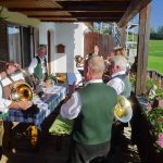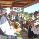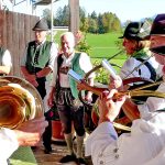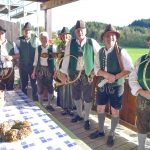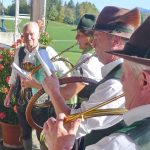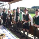Fotos: Hötzelsperger – 1. Von links: Florian Bauer (Veteranenverein Wildenwart), Leopold Schlosser und Trachtenvórstand Michael Schlosser. 2. Die Jägervereinigung Rosenheim gratulierte mit einer Jagdhornbläsergruppe und mit Vorsitzendem Franz Sommer.