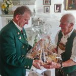 „Weit mehr als die Hälfte seines Lebens hast Du als Jäger der Jägervereinigung Rosenheim gedient, dafür danken wir Dir heute mit einem Ständchen unserer Jagdhornbläsergruppe“ – mit diesen Worten und mit einem Präsentkorb gratulierte Erster Vorsitzender Franz Sommer seinem Jagdkollegen Leopold Schlosser in Prien-Stetten zu dessen 85. Geburtstag. Weitere Gratulanten waren der GTEV „Daxenwinkler“ Atzing sowie der Veteranenverein Wildenwart, denen der Jubilar seit vielen Jahrzehnten und lange Zeit auch durch Übernahme von Ehrenämtern eng und freundschaftlich verbunden war und ist. Die Vorstände Michael Schlosser (Trachtenverein) und Florian Bauer (Veteranen) überbrachten ebenfalls Glückwünsche und Geschenke.