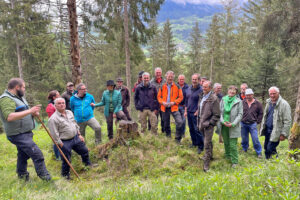 Ein Ziel der 2020 in Berchtesgaden gegründeten Arbeitsgemeinschaft „ARGE Wild – Mensch – Natur“ ist es, Strategien für ein gemeinsames Management des Wildes mit seinem Lebensraum unter besonderer Berücksichtigung des Klimaschutzes zu entwickeln. Um hierzu die Kommunikation und das gegenseitige Verständnis zwischen den verschiedenen Akteuren zu fördern, hat die ARGE kürzlich zu einer Exkursion in ein Gemeindejagd- und Staatswaldrevier zu den Themen Wald- und Wildtiermanagement eingeladen. Insgesamt sind rund 20 Interessierte der Einladung gefolgt.