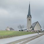 Fotos: Hötzelsperger / Dhom – 1. Vor-Ort-Termin in der Kirche „Maria Stein“ von links: Architekt Stefan Lippert, Kirchenpfleger Heinrich Dhom, Pfarrer Claus Kedinger, Kirchenverwaltungsleiterin Dagmar Unger und Architektin Birgit Ströbitzer. 2. Ansichten Kirche „Maria Stern“ von Neukirchen Außen und Innen.