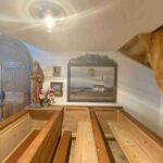 - Ausbesserungsarbeiten im Langhaus und Chor, Reinigung des gesamten Bodens, Wiedermontage der bereits abgenommenen Friedenstaube am Chorbogen