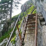 Der Mini-Klettersteig: Der beliebte Gipfelaufstieg ist als einfacher „Klettersteig“ angegeben, der eher ein seilversicherter Steig ist. Die Zwergerl sollten mit einem Erwachsenen bei der Hütte bleiben, aber größere Kinder können ohne weiteres mitgenommen werden. Nur sollten alle schwindelfrei und trittsicher sein. Auf dem Dr.-Julius-Mayr-Weg durchsteigen wir zuerst das Highlight – einen sehr schmalen Felsspalt – und steigen anschließend, stellenweise gesichert über Leitern und felsdurchsetztes Gelände aufwärts. Nach 45 Minuten erreichen wir den Gipfel (1619 m) mit einem traumhaften Blick auf die umliegenden Berge und die Zentralalpen. Einige Meter entfernt vom Gipfelkreuz steht eine kleine Kapelle. Vorsicht, nach Norden fällt es steil ab! Der Abstieg ist zu Beginn ein wenig steil und erfordert Trittsicherheit. Er führt westlich des Gipfels in einem weiten Linksbogen auf markiertem Weg zurück zum Brünnsteinhaus.