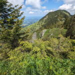 Von allen Gipfeln des Hochriesmassivs zählt der Karkopf zu den weniger frequentierten Zielen. Hier oben genießt man eine Einsamkeit und kann in aller Ruhe die Stille und den weiten Blick ins Alpenvorland auf sich wirken lassen (siehe Foto oben). Das Gipfelkreuz steht malerisch inmitten eines ausgedehnten Blaubeerfeldes.