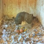 Die Brutsaison 2022 hat begonnen. In der Nacht zum 10. März hat „Frau“ Wanderfalke ihr erstes Ei gelegt. „Eine Woche früher als im letzten Jahr“, erzählt Erwin Heigl. Im Abstand von zwei Tagen folgen dann in der Regel drei bis fünf Eier. Bei unserem Rosenheimer Wanderfalkenpärchen sind es aktuell schon drei winziger Eier, die bequem auf Nistmaterial und Federflaum gebettet wurden und auf ihren großen Tag warten.