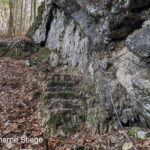 Ab dem Wanderparkplatz bleiben wir ca. 10 Minuten in südlicher Richtung auf der Straße. Am Waldrand biegen wir rechts ab und nach 40 Metern bei einer Gabelung nochmals rechts, Die Abzweigungen sind jeweils beschildert (“Breitenberghaus /Mitteralm”). Nun geht es kurzzeitig durch einen lichten Wald auf der Forststraße recht steil aufwärts. Bald wird es wieder flacher, die Abzweigung zum Breitenberghaus lassen wir rechts liegen. Eine halbe Stunde danach queren wir die Wendelstein-Zahnradbahn durch eine kleine Unterführung. Nun steigen wir moderat durch den lichten Wald empor und bleiben meist in Sichtweite der Zahnradbahn und des links verlaufenden Mühlbachs. Ca. 30 Minuten nach der Unterführung erreichen wir – noch vor der Bahnstation Aipl – den sog. “Schwarzen Ursprung”, ein Quellgebiet mehrerer Bäche. Hier verweist linker Hand ein altes Schild zum Arzmoos, daneben führen Stahlbalken einer verfallenen Brücke über den Bach, und rechts daneben gibt es eine Furt (siehe Bild). Meist kann man den Bach einfach überqueren, im Winter oder bei viel Wasser müsste man geschickt über die alten Stahlbalken balancieren. Danach beginnt ein knapp halbstündiger, steilerer Aufstieg durch den bewaldeten Nordhang des Butterberges. Der Weg wendet später nach links und bald erreichen wir ein flaches Gelände mit der Kronberger Alm. An ihr vorbei wandern wir zwischen ein paar Bäumen hindurch und stoßen bald auf ein breites Gatter.