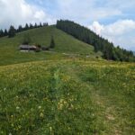 Ab jetzt geht es weiter bergab. Wir halten uns links und bleiben die nächsten 600 Meter auf der Forststraße. Dann verlassen wir diese auf einer Höhe von 1150 m. Achtung: Hier gibt es keine Wegweiser, zudem ist der Einstieg schlecht erkennbar. Lediglich eine kaum erkennbare Markierung ziert einen Baumstamm. Nun wandern wir drei Kilometer in westliche Richtung. Unser Weg wird bald breiter und wir steigen stetig leicht bergab. Später überqueren wir erneut den Bucher Graben, halten uns danach rechts und bei der folgenden Gabelung links. Nun ist die Schwaigeralm nicht mehr weit, die uns auf eine zünftige Brotzeit einlädt. Zurück zum Parkplatz geht es dann auf dem bekannten Weg.