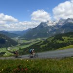 Der Gasthof auf dem Gipfelplateau mit seiner großen Sonnenterrasse steht direkt neben der Bergstation und bietet eine grandiose Aussicht auf die Loferer und Leoganger Steinberge.