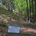 Die Wanderung beginnt direkt hinter dem Ort. Nach 500 m auf breitem Forstweg führt uns ein schmaler Pfad zügig bergauf, in steilen Serpentinen windet er sich durch den schattigen Wald.