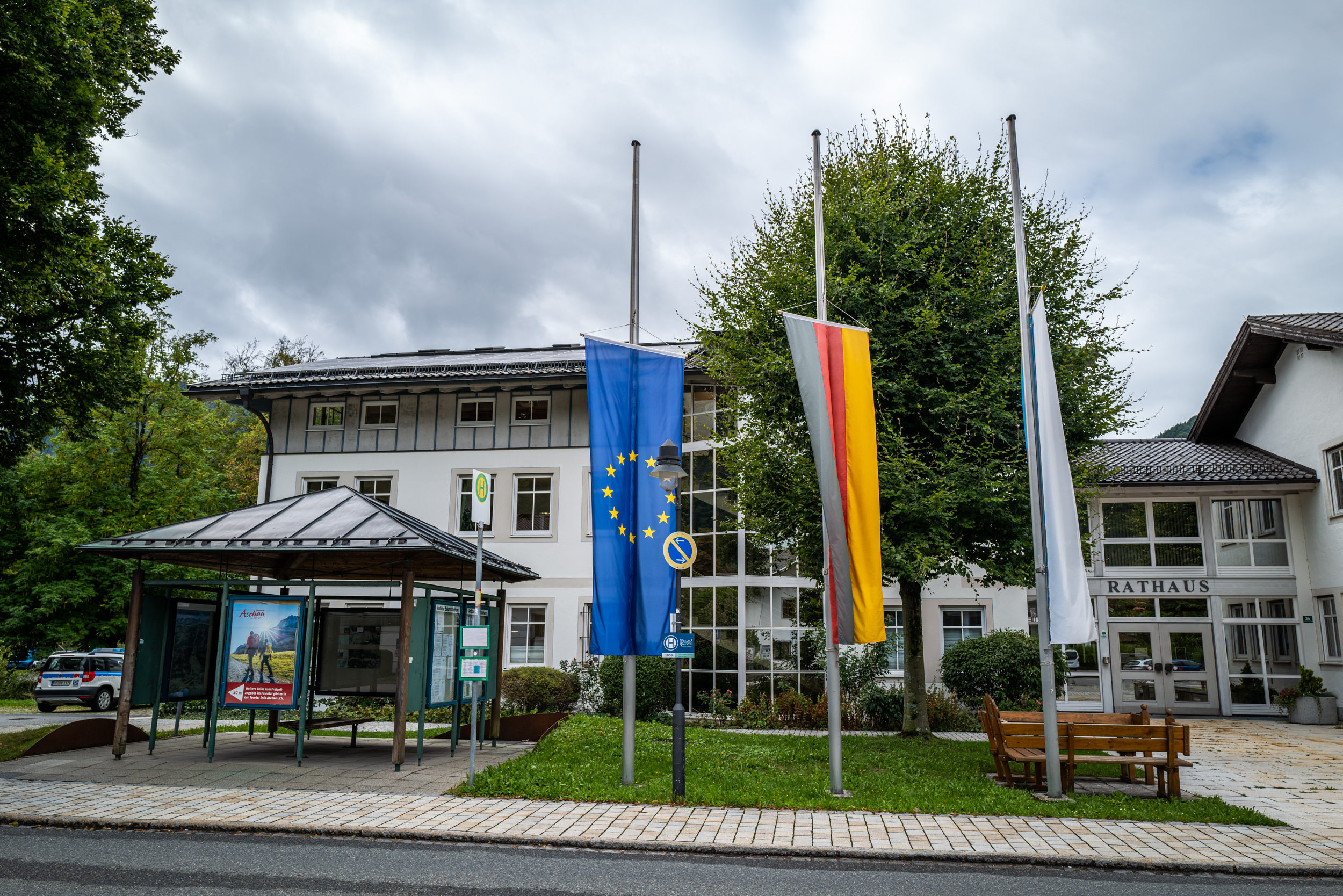 Trauerbeflaggung vor dem Rathaus in Aschau