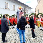 Für Bürgermeister Josef Huber (li), Pfarrer David Mehlich (Mitte) und Konrektor Alexander Eichler (re) hatte der Oberkasperl nicht nur ein Schnapserl parat, auch einen flotten Trinkspruch hörten die 3 Herren
