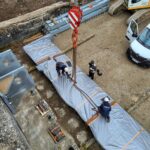 70-Tonnen-Kran zieht Fischbauchklappe hoch