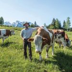 Eine Landwirtschaft ohne Tiere? Im Einzugsgebiet der Molkerei Berchtesgadener Land, also zwischen Watzmann und Zugspitze, nicht denkbar! Denn 75 Prozent der Fläche im Milcherfassungsgebiet der Molkerei Berchtesgadener Land ist bestes Grasland – und Gras wächst auch dort, wo Ackerbau aufgrund der steilen Hanglage nicht möglich ist. Das heißt, eine landwirtschaftliche Nutzung dieser Fläche ist nur durch Tierhaltung möglich. Diese ist dort aber auch für die Natur wichtig, wie Landwirt Alois Kramer aus Krün erklärt: „Erst durch die Beweidung bleiben die Flächen hier in der Bergregion offen und vielfältig – auf so einer Bergwiese wachsen bis zu 30 verschiedene Arten an Gräsern und Kräutern.“ Auch die Kühe freuen sich über die vielfältigen Kräuter und Gräser, denn diese schmecken ihnen besonders gut. Eine solch kräuterreiche Fütterung wirkt sich positiv auf den Geschmack der Milch aus und reduziert gleichzeitig den bei der Verdauung entstehenden Methanausstoß der Kühe – das belegt eine Studie der Christian-Albrechts-Universität zu Kiel (Institut für Pflanzenbau und Pflanzenzüchtung der Christian-Albrechts-Universität zu Kiel (2018): Leistungen von der Weide).