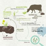 Weidehaltung hat noch einen weiteren positiven Effekt: Durch die Tritte und Bisse der Kühe wird das Gras- und Wurzelwachstum angeregt, wodurch die Humusbildung und auch das Wasserhaltevermögen der Böden, also die Fähigkeit der Böden Wasser aufzunehmen und zu binden, gefördert wird. Dies ist insbesondere im Hinblick auf den Klimaschutz von Bedeutung. Denn jede Tonne zusätzlicher Humus im Boden kann rund 1,8 Tonnen CO2 binden (Anita Idel (2011): Die Kuh ist kein Klimakiller!). Ein Beispiel dafür, dass – anders als bei der industriellen Produktion, die lediglich Treibhausgase verursachen kann – Landwirtschaft die Fähigkeit besitzt, CO2 zu speichern, also eine klimapositive Wirkung zu erzeugen. „Dieser Zusammenhang zwischen Weidehaltung, gesundem Bodenleben und klimapositiver Wirkung ist für viele neu. Auch in der Wissenschaft gibt es bislang nur wenig valide Daten dazu. Deshalb haben wir eine Hochschul-Abschlussarbeit ausgelobt. Darin sollen Betriebe unserer Landwirte auf ihre Klimawirkung hin untersucht werden, und zwar sowohl die klimaschädlichen, aber auch die klimapositiven Faktoren“, erklärt Bernhard Pointner, Geschäftsführer der Molkerei Berchtesgadener Land. Damit unterstreicht die Molkerei Berchtesgadener Land einmal mehr ihr umfassendes Engagement im Bereich Nachhaltigkeit.