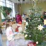 Bild 1234 der Weihnachtsbaum in der Aula mit gebastelten Sternen der 1. + 2. Klasse