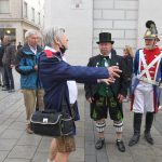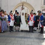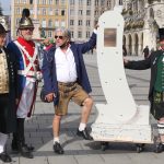 Am Sonntag, den 19. September 2021 spannt sich ein herrlich weißblauer Himmel über das Bayernland. Petrus hat es gut gemeint. Es ist 11 Uhr vormittags. Viele Touristen stehen vor dem Münchner Rathaus um das Glockenspiel zu beobachten. Doch kurz danach hört man eine schwere Trommel, die Blasmusik ankündigt. Verwundert stellen die Zuschauer fest, hier bewegt sich ein größerer Menschenzug. Allen voran eine nobler Herr mit Frack und Zylinder. Er führt mit einem Fahrwagen eine überdimensionale Weißwurst über den Marienplatz. Dahinter geht die Münchner Stadtwache mit historischen Kostümen aus dem Jahr 1800. Und ein zackiger Marsch der Donisl Blaskapelle führt weitere 20 Personen der Stadtgeschichte an. Sie alle feiern die Geburt der Weißwurst im Jahr 1857 beim Wirtshaus zum Ewigen Licht. Es war damals der Gastwirt Sepp Moser, der die erste Weißwurst in seiner Küche im heißen Wasser servierte. 167 Jahre ist dies nun her. Bichlmeier will die Geschichte der Weißwurst in seinem Film „Zeitreise Bayern“ darstellen. Dazu hat er sich eine besondere Szene für den Schluß vorgestellt. Nämlich – die Einweihung des Weißwurst-Denkmals Bayern. Diese Wurst ist ja immerhin weltberühmt. Egal ob Bayer, Preiss oder Japaner – alle lieben sie.