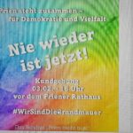 Von den „Omas gegen rechts“ bis zu Mitarbeiterinnen der Priener Bücherei wollten überraschend viele engagierte Bürger ein Zeichen setzen für Solidarität und gegen Diskriminierung, Ausgrenzung, Hetze und Gewalt. Mit Schildern und Bannern bekundeten sie ihren Wunsch nach Erhaltung unserer Demokratie und für eine Gesellschaft mit Vielfalt statt Einfalt. Nach Reden von Organisator Detlef Dobersalske vom Bündnis “Prien bleibt bunt” , Pfarrer Mirko Hoppe und weiteren Rednern rundete der Priener Chor “Swingin Voices” die Veranstaltung mit passenden Gospels und Spirituals ab.