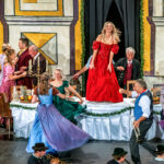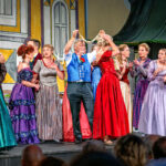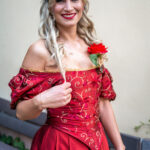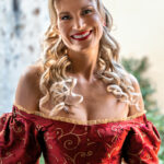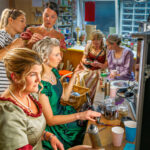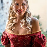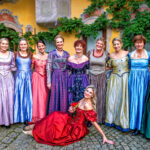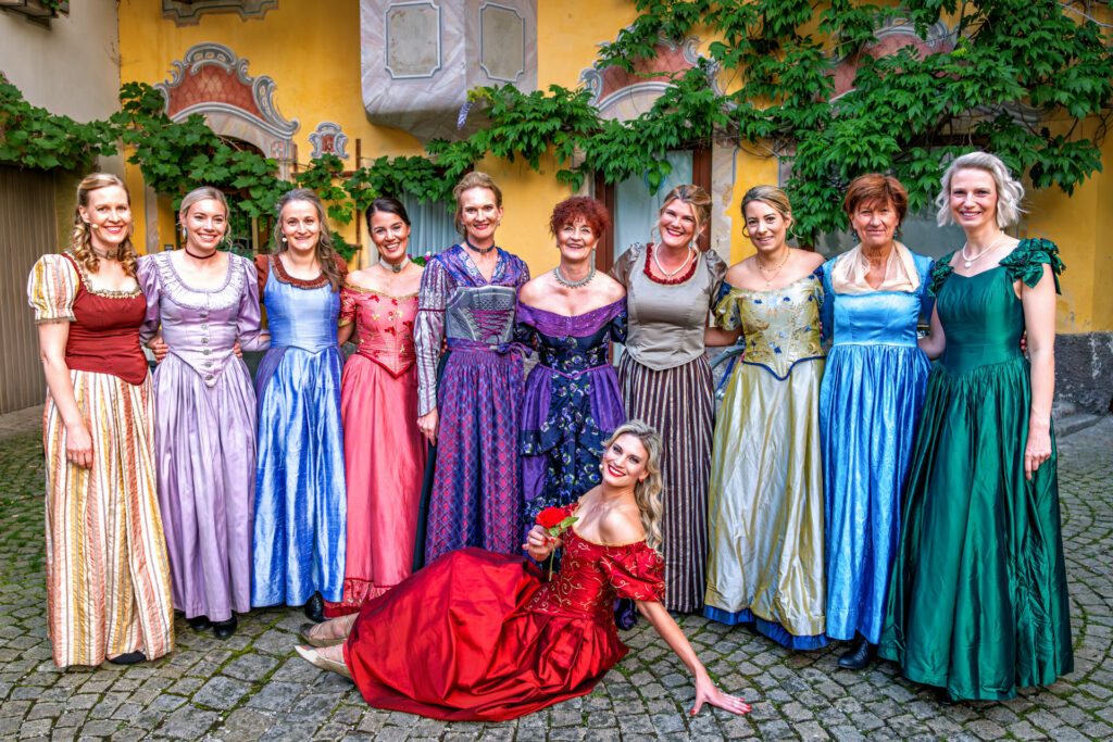 Farbenpracht und Bühnenzauber – die Kostüme des Bayerischen Jedermann Nicht nur das Schauspiel selbst, auch die aufwendig gestalteten Kostüme machen den „Bayerischen Jedermann“ zu einem unvergesslichen Erlebnis. Die Darstellerinnen auf dem Foto verkörpern mit ihren farbenfrohen Gewändern die ganze Vielfalt und Opulenz einer Theateraufführung, die bis ins kleinste Detail liebevoll gestaltet ist. Jede Robe ist ein handwerkliches Kunstwerk – vom fließenden Stoff bis zu den feinen Stickereien. Ob in kräftigem Smaragdgrün, leuchtendem Purpur oder zartem Pastell – die Kleider unterstreichen nicht nur die Rollen der Figuren, sondern schaffen auch ein harmonisches Gesamtbild auf der Bühne des Neubeurer Marktplatzes. Verantwortlich für diese prachtvolle Garderobe ist Petra Martin, die mit sicherem Gespür für Stoffe, Farben und historische Anmutung sämtliche Kostüme entworfen und angefertigt hat. Mit ihrer Kreativität und ihrem handwerklichen Können hat sie maßgeblich dazu beigetragen, dass das Publikum für einige Stunden in eine andere Zeit eintauchen kann.