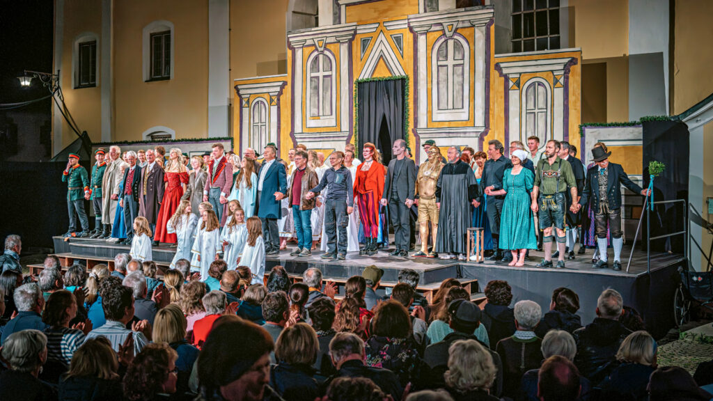 Heute Abend fällt der letzte Vorhang für den „Bayerischen Jedermann“ in Neubeuern. Sechs ausverkaufte Abende, hunderte Mitwirkende und tausende begeisterte Zuschauer machen diese Inszenierung zu einem außergewöhnlichen kulturellen Höhepunkt. Ein Rückblick auf ein Theaterprojekt, das weit mehr war als nur ein Spiel.