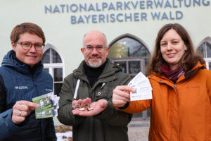 „Wir machen uns zusammen mit unseren touristischen Partnern von der Ferienregion und dem Nationalpark-Führungsservice, der zahlenmäßig die meisten Führungen mit den Waldführern organisiert und durchführt, regelmäßig viele Gedanken, was wir unseren Besuchern an tollen Erlebnissen und geführten Themenwanderungen anbieten können“, erklärt Teresa Schreib von der Nationalparkverwaltung. Schließlich sei das Bildungsprogramm des Nationalparks auch ein zentrales touristisches Angebot in der Region. „Nun wollen wir erstmals ein wenig mehr über unsere Führungsteilnehmer und ihre Meinung zu unserem Angebot erfahren.“ Julia Zink, bei der Nationalparkverwaltung zuständig für das Besuchermonitoring, hat dafür eine Onlineumfrage erstellt, bei der die Teilnehmer an den Führungsformaten `Nationalpark Exklusiv´- und `Nationalpark und Schöpfung´ zu Themen wie Uhrzeiten, Dauer, Inhalt und ihrer Zufriedenheit befragt werden. Zur Umfrage gelangen die Führungsteilnehmer über ein Kärtchen mit QR-Code, das am Ende der Führung ausgegeben wird.