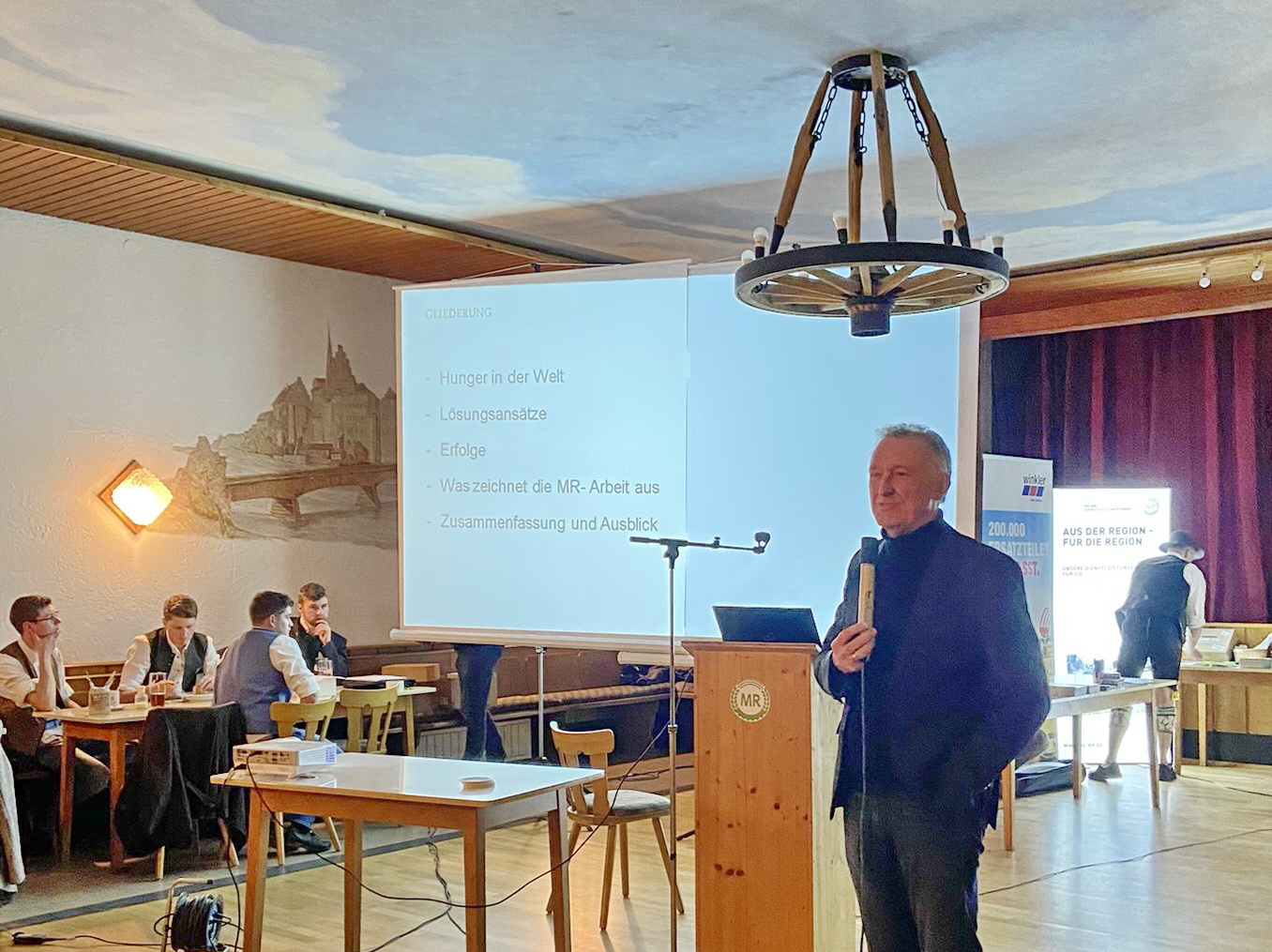 Vortrag beim MR Rosenheim im Gasthof Kapsner in Schechen – „Unvorstellbarer Hunger und unglaublich hohe Sterbefälle von Kindern unter fünf Jahren wegen Hunger waren und sind mir und dem MR Antrieb, um in Afrika Gründungen von Maschinenringen vorzunehmen, denn es ist schließlich eine Schande für Menschheit und Gesellschaft, wie spärlich wir trotz unseres Wissens und unserer Möglichkeiten die sichtbare Not bekämpfen“ – mit diesen Worten führte bei der JHV des MR Rosenheim im Gasthaus Kapsner in Schechen Erwin Ballis in seinen Vortrag ein.