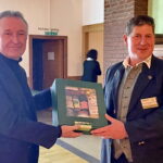 Fotos: Hötzelsperger – Eindrücke vom Afrika-Vortrag von Erwin Ballis beim MR Rosenheim – 1. Danke-Präsent von MR-Vorsitzendem Franz Blinniger (re.) an Erwin Balles, dem MR-Bundesgeschäftsführer – 2. Vortrag von Erwin Balles – 3. Afrika-Bilder aus dem Vortrag.