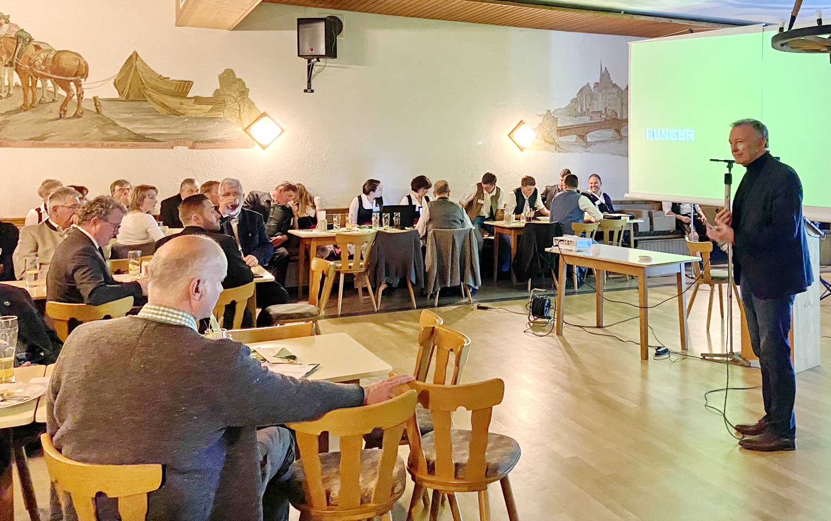 Ballis ist Geschäftsführer des Bundesverbandes für Maschinenringe e.V. / Maschinenringe in Afrika, sein Vortragsthema lautete: „Wir unterstützen den wichtigsten Beruf der Welt und sichern als Landwirte die Ernährung“. Hilfe zur Selbsthilfe – unter diesem Motto schreibt der MR-Bundesverband seit 2019 eine Erfolgsgeschichte in Westafrika. Mit finanzieller Unterstützung der Bayerischen Staatskanzlei, der Entwicklungsorganisation Sequa und dem Bundesministerium für wirtschaftliche Zusammenarbeit und Entwicklung unterstützen die Maschinenringe im Senegal Landwirte bei der Mechanisierung ihrer Betriebsstrukturen. Was mit der Anschaffung einfacher Getreidemühlen begann, hat sich zu einem Projekt etabliert, das den Menschen auf dem Land mithilfe der Maschinenring-Idee mittlerweile zu Produktivitätssteigerungen und Arbeitserleichterungen verhilft. In Senegal leben – so der Referent weiter – 70 Prozent der 17 Millionen Einwohner von der Landwirtschaft. Das Durchschnittsalter der Bevölkerung beträgt 18 Jahre (in Deutschland 45 Jahre), das Land ist politisch stabil und bislang konnten sich die Familien mit ihren vorwiegend mit den Händen gemachten Arbeiten nur selbst ernähren. „Innerhalb von drei Jahren haben rund 1.000 einfache Maschinen zum Einsatz gebracht, 57 Dorf-Maschinenringe gegründet und rund 10.000 Mitglieder gewonnen. Aufgrund unserer Aktion mit Saatgut und Dünger konnten 7.000 Mitglieder ihren Anbau erhöhen, das ergab in der Summe 25.000 Hektar mehr Anbaufläche und das entspricht der Hälfte der Größe vom Landkreis Rosenheim“. Erwin Ballis informierte, dass nach Senegal auch in Kenia Neu-Gründungen vorgenommen worden sind und dass jüngst mit Hilfe einer MR-Kaffeeproduktion vielversprechende Gespräche mit der Firma Dinzler in Irschenberg geführt wurden. Abschließend erklärte der leidenschaftliche MR-Bundesgeschäftsführer: „Nur Landwirte können die Welt ernähren und den Hunger bekämpfen, unser Ziel ist es, in fünf Jahren in Senegal 2.000 MR-Organisationen und in zehn Jahren dort den Hunger besiegt zu haben – ganz nach unserem Slogan: Besser wir machen das als Maschinenring“. Im übrigen gibt es in Deutschland rund 190.000 MR-Mitgliedsbetriebe mit rund 11.000 Mitarbeitern, neben Europa und Afrika gibt es auch noch MR u.a. in Brasilien und Japan (dort ca. 500). Gerade für Afrika werden in Deutschland noch MR-Patenschaften gesucht, Start-Voraussetzungen für eine Gründung ist der Betrag von 15.000 Euro.
